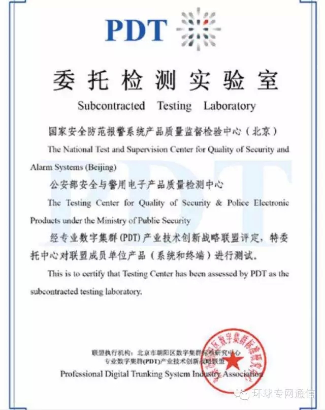 迄今为止,已有8家PDT数字集群系统、9家PDT数字集群手持台和3家PDT数字集群车载台通过了公安部安全与警用电子产品质量检测中心的入网检测。