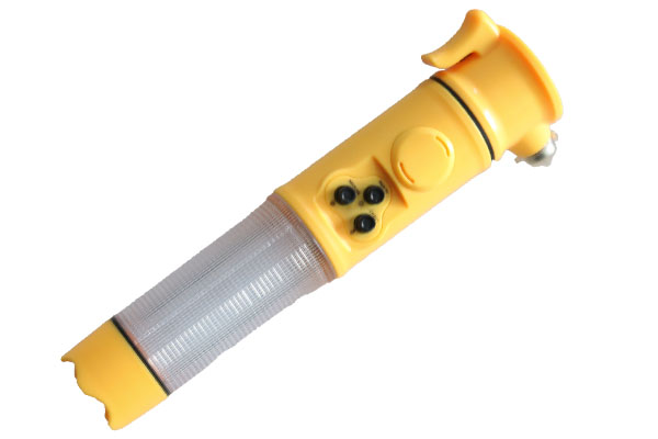 功能:闪光警示、逃生锤 尺寸:19.5*3.5cm 供电:2节5号电池 LED: 红光闪烁管 亮度:3000~5000 mcd 荧光灯泡:单个2.5V 0.3A 使用时间:发光管约40小时;照明灯约40小时。 重量:200g